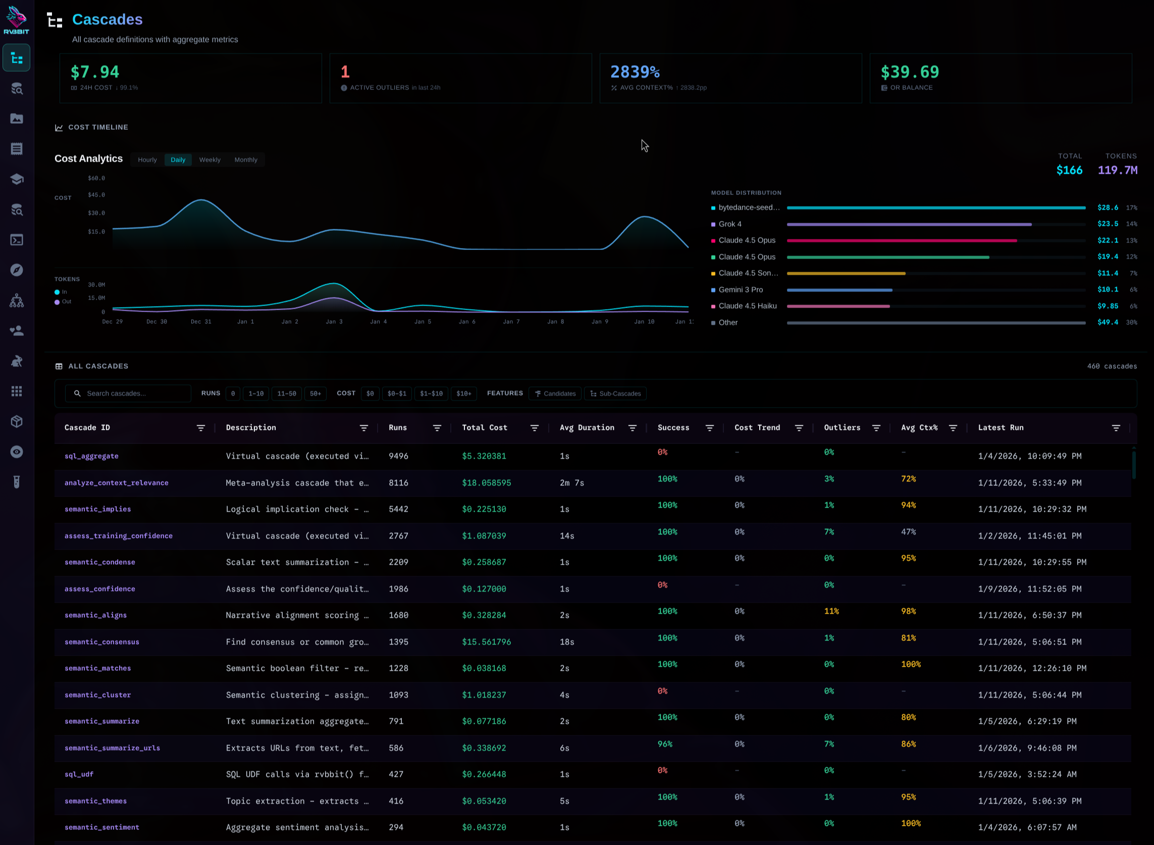 Drill down into costs. By cascade. By cell. By model. By hour.