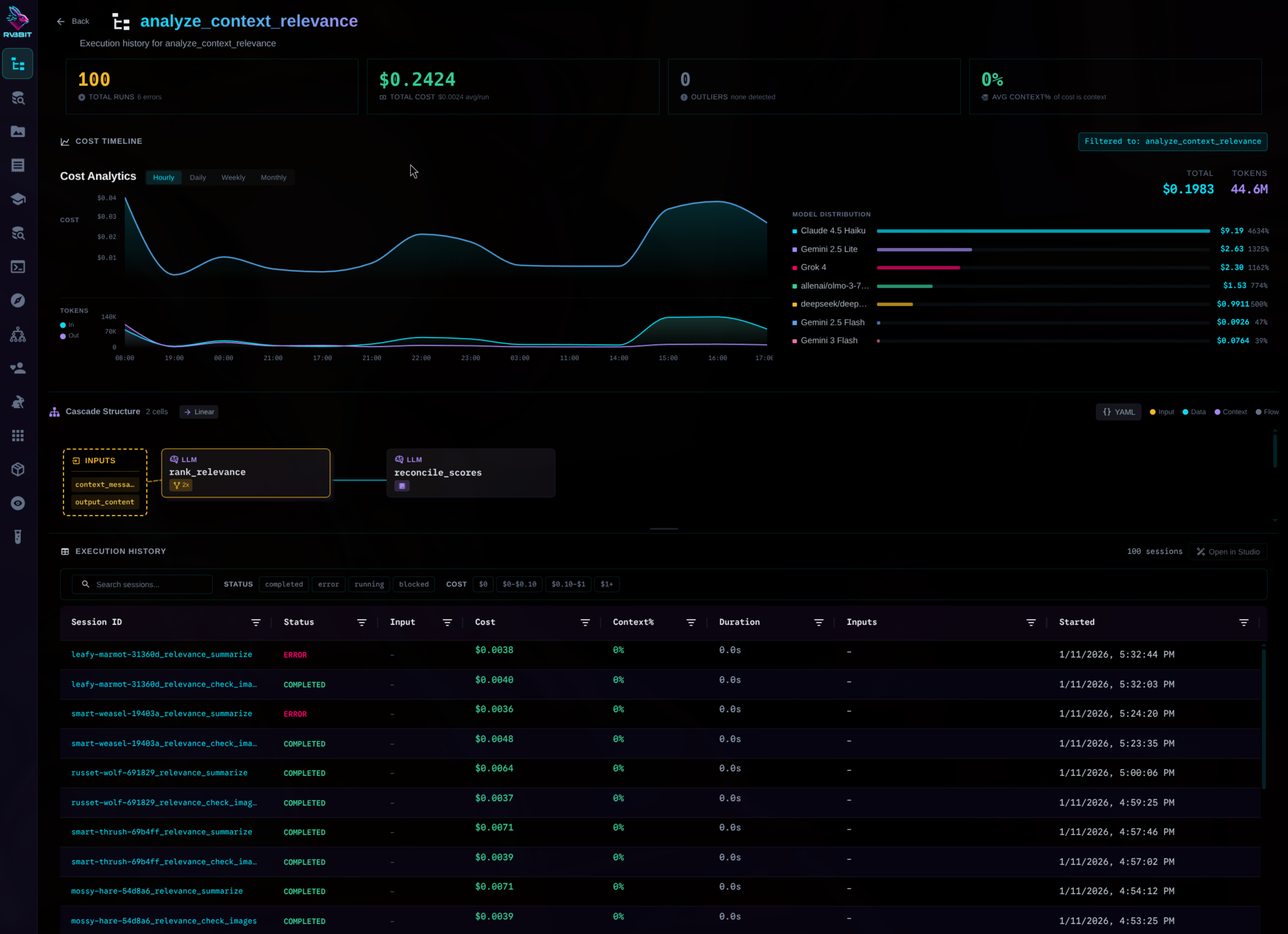 See all your workflows at a glance. Cost per cascade. Success rates. Recent runs.